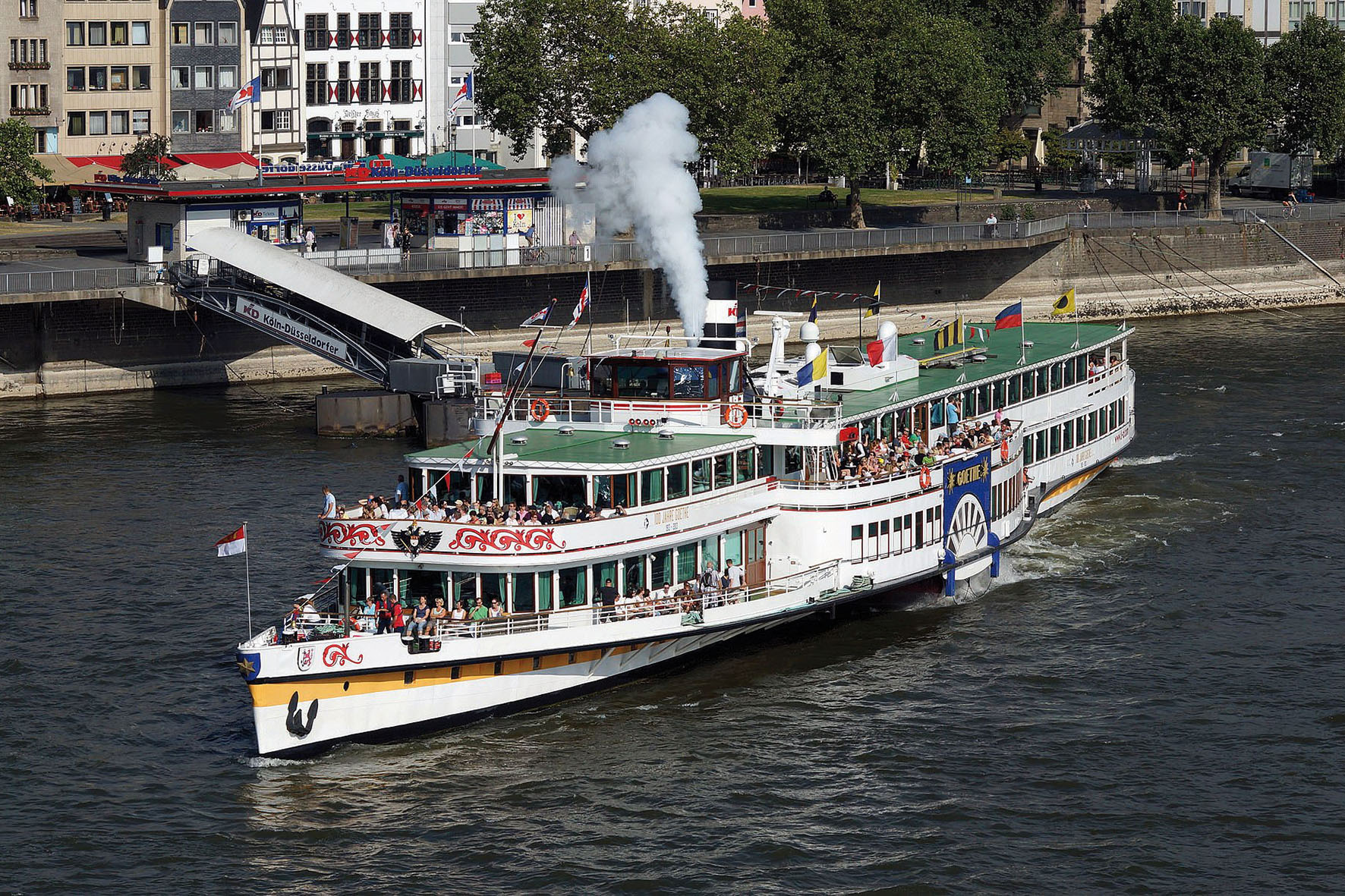 Mit dem historischen Schaufelradschiff Goethe