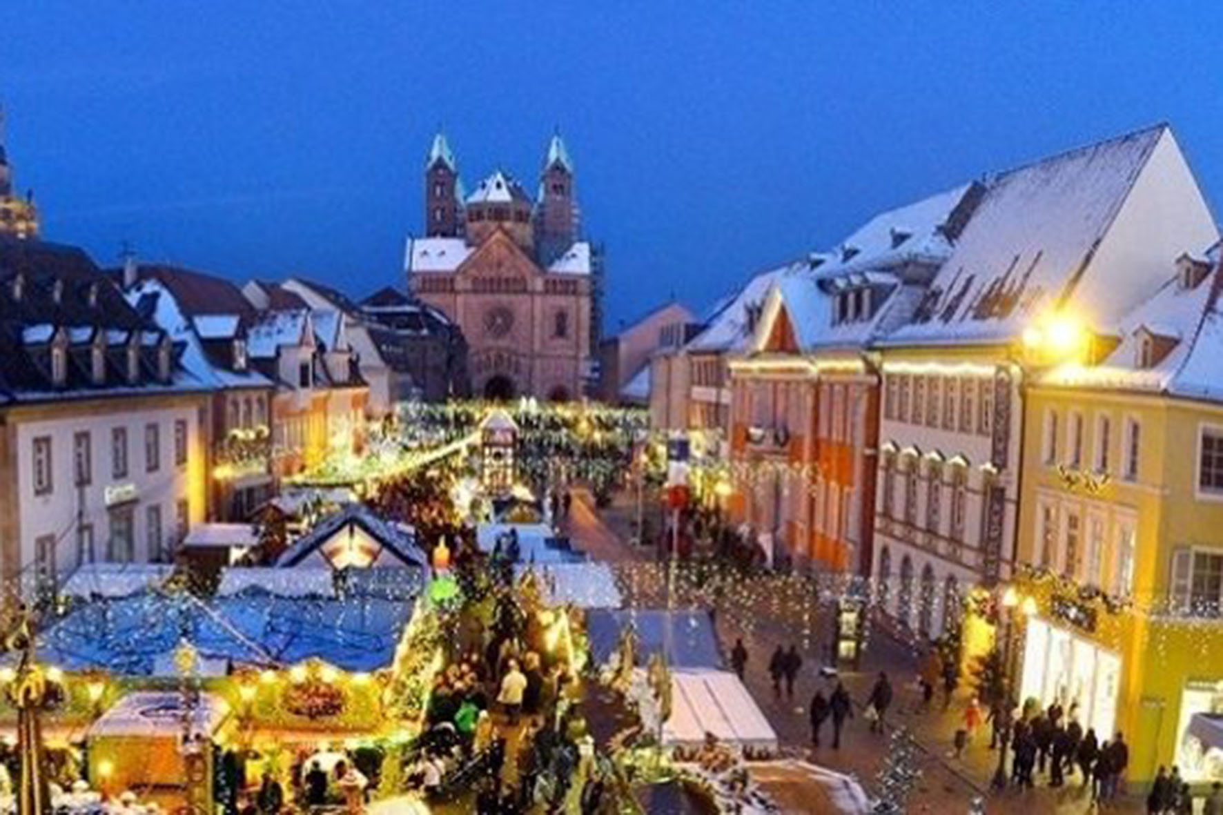 Vor Europas größter romanischer Kirche, dem Kaiserdom zu Speyer, präsentieren sich die festlich geschmückten Hütten inmitten der Innenstadt. Das vielfältige Angebot an zahlreichen Verkaufsständen sowie verführerisch duftende Speisen und Getränke laden in die Speyerer Innenstadt ein.